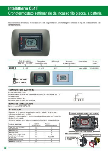 Intellitherm C51-CCon Intellitherm Cpossibile estrarre il corpo del cronotermostato dal telaio dopo il fissaggio ed i collegamenti. Cronotermostati elettronici a microprocessore, con programmazione settimanale per il comando di impianti di riscaldamento e di condizionamento. 1 1 e non si applicano alle attività di raccolta e trasporto di.